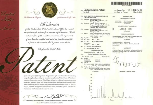 此次《專利授權(quán)證書》的獲得是作為 Akt 抑制劑的鹽型及其晶型分別在美國、韓國獲得的專利授權(quán),是公司在創(chuàng)新藥品研究方面的重大進展,有利于進一步完善公司知識產(chǎn)權(quán)保護體系,充分發(fā)揮自主知識產(chǎn)權(quán)的技術(shù)優(yōu)勢,促進技術(shù)創(chuàng)新,從而提升公司核心競爭力。該項專利獲得后,將依托劑型優(yōu)勢,為產(chǎn)品創(chuàng)造更長久的市場收益。這也是珍寶島藥業(yè)在專利保護方面邁向國際的又一成果顯現(xiàn)。