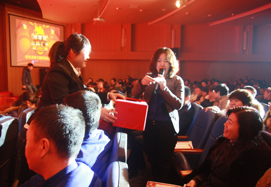 為了增強互動性,晚會精心準備了互動游戲。在主持人幽默的調侃下,踴躍參與的員工們體驗了參與的樂趣,收獲了喜悅,并獲得了精美的小禮品。而穿插在晚會過程中的三輪抽獎環(huán)節(jié)更是將晚會氣氛推向一個又一個的高潮。當中高層領導公布幸運號碼時,全場立刻變成了熱鬧歡騰的海洋。在熱烈的掌聲和歡呼聲中,19份幸運大獎全部找到了歸屬。